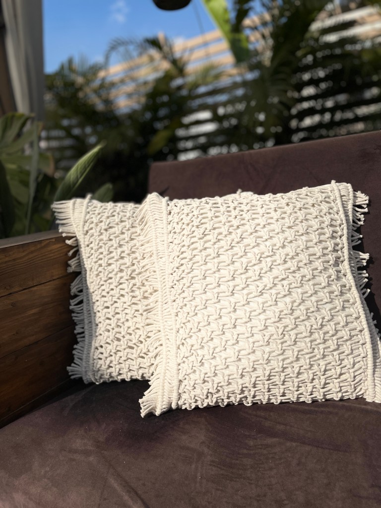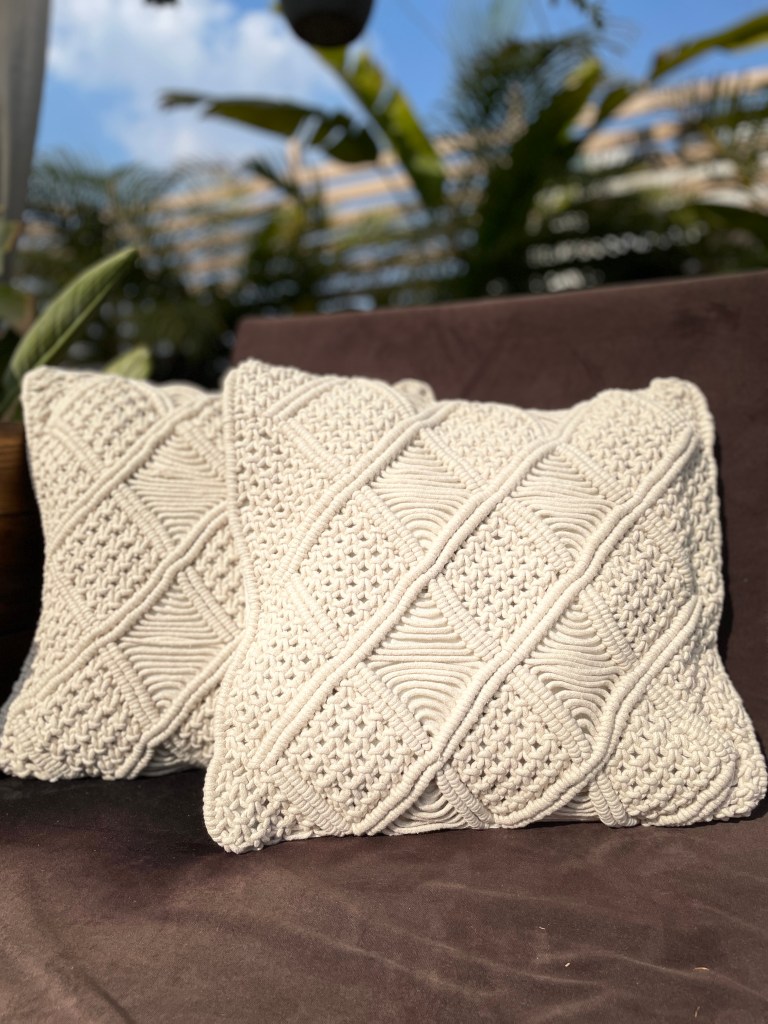 This range of Cushion Covers are inspired by the Power of women. They are made with Natural Cotton woven Rope by Indian women from these Rural parts of North India.The back is made with khaadi fabric and a zipper.Each piece is made with quality rope and can also be made to order in a different colour of any size.